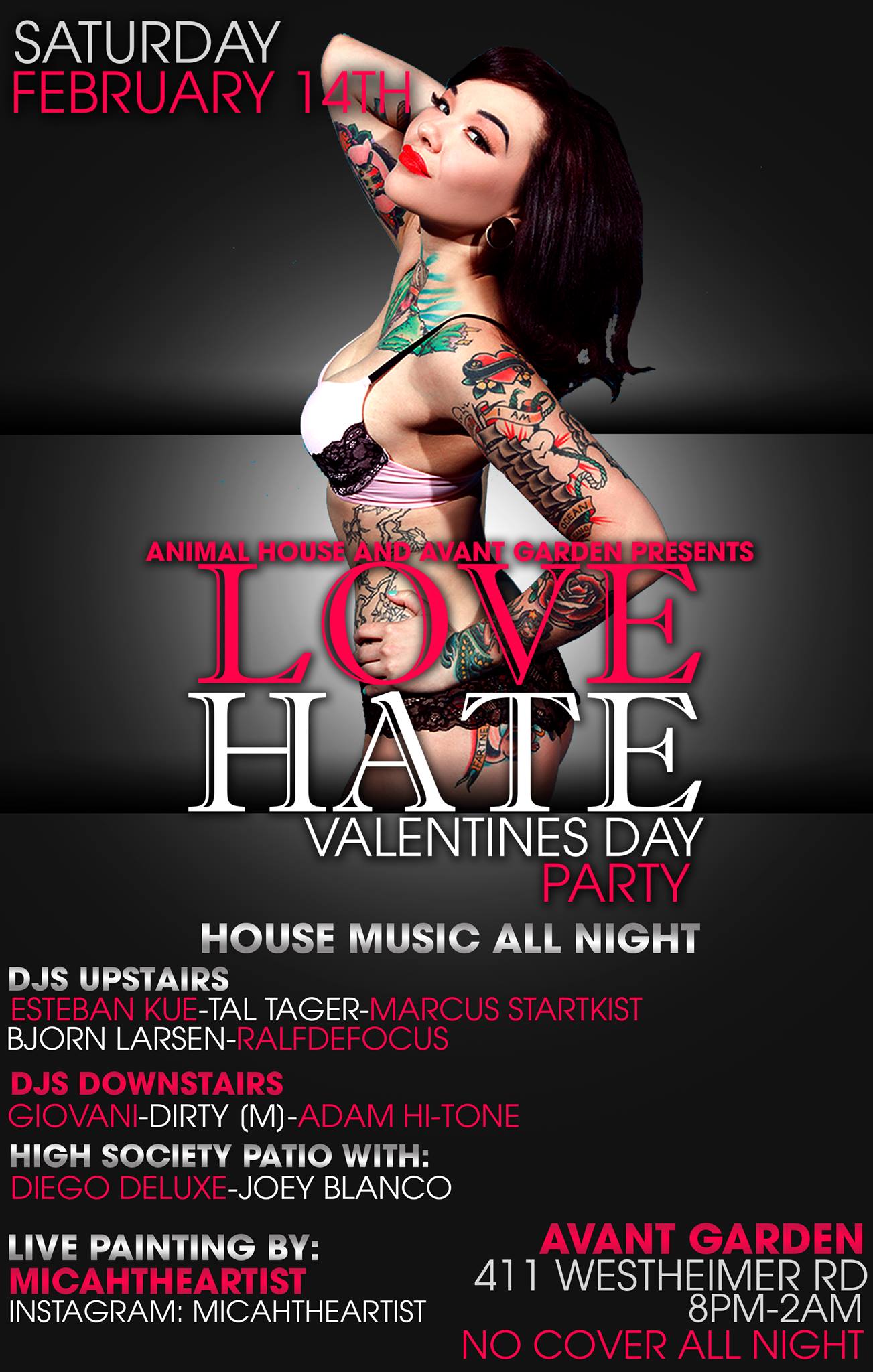 LoveHate. A night full of lovely music to fall in love with. With 3 areas of music full of some of Houston's favorites.